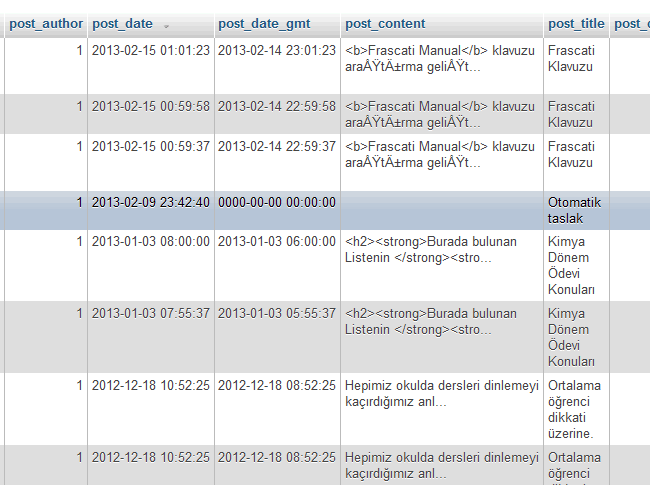 Karakter sitede düzgün görünüyor ama veritabanında phpmyAdmin ile baktığımda “<b>Frascati Manual</b> klavuzu araÅŸtırma geliÅŸt…” şeklinde görünmekte.
