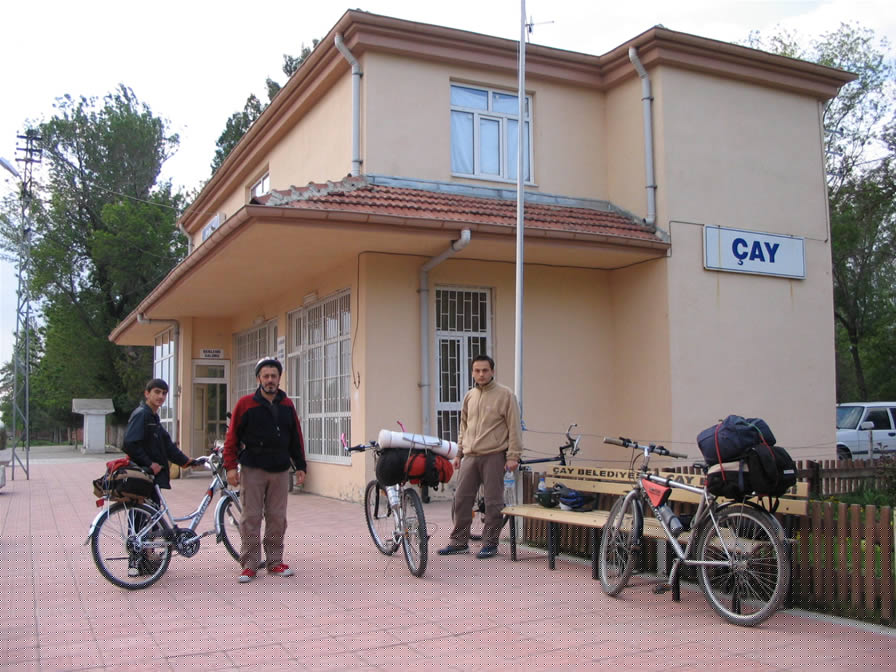 Rahat bir yolculuktan sonra sabah 5:30 gibi Çay’a vardık. Treni bekletmemek için hızla çanta ve bisiklet parçalarını raylar üzerine attıktan sonraki görüntü daha çok bir tren kazasını andırıyordu. Fotoğraf 2